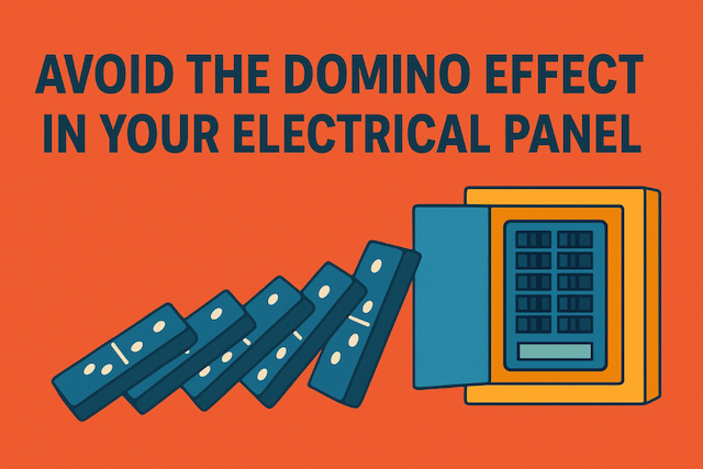 In the electrical world, we use the term domino effect to describe what can happen inside your breaker panel. If a single bad breaker overheats, it can sometimes burn and spread damage to adjacent breakers. Left unchecked, this chain reaction can ruin your entire electrical panel—and that’s a costly problem to fix.